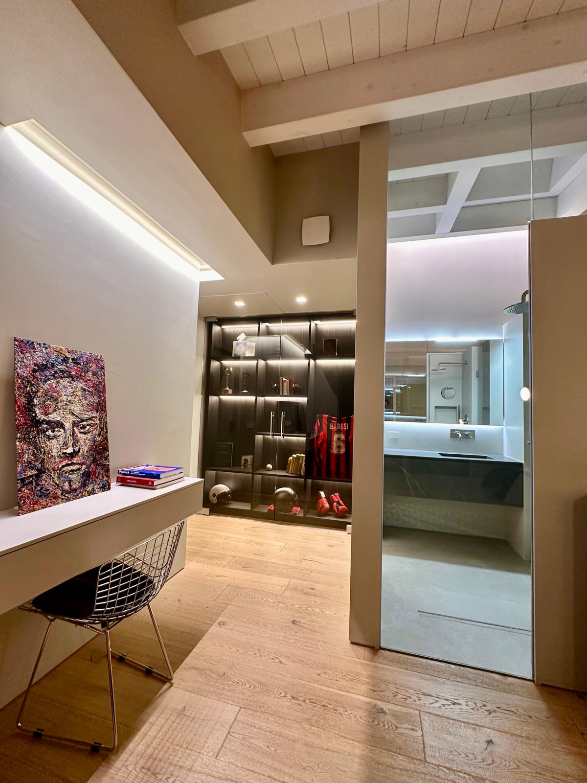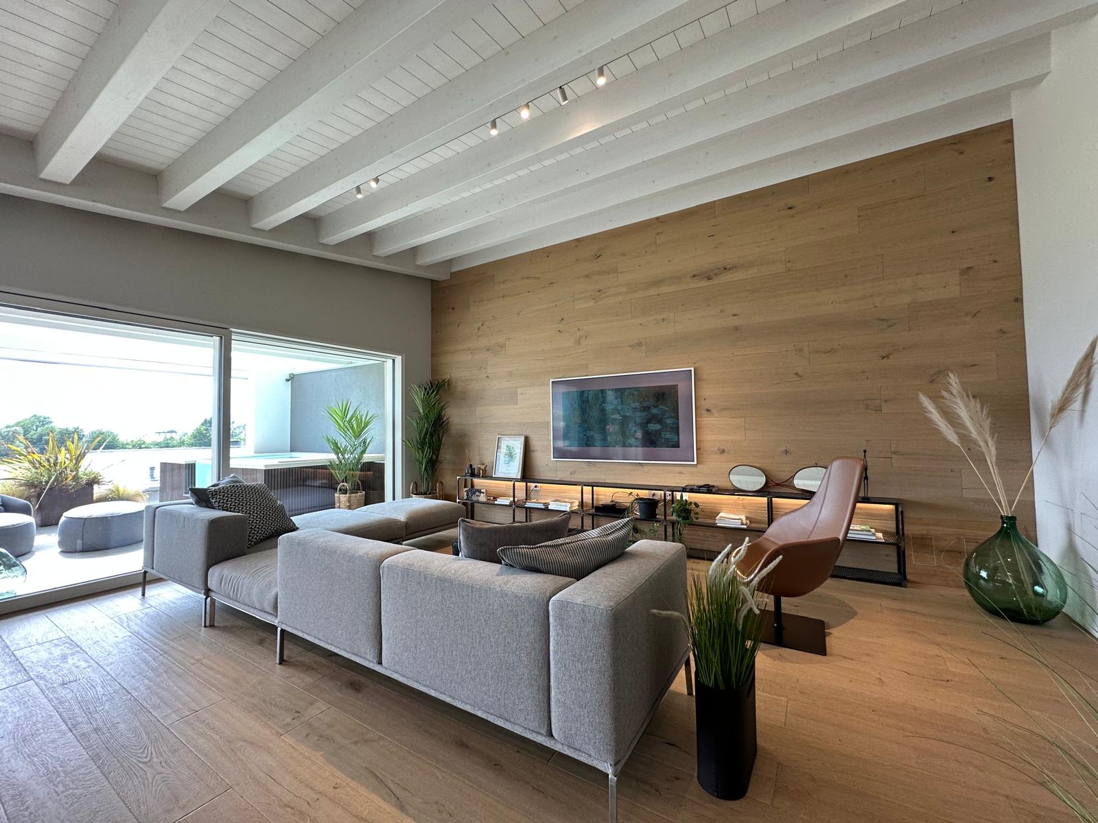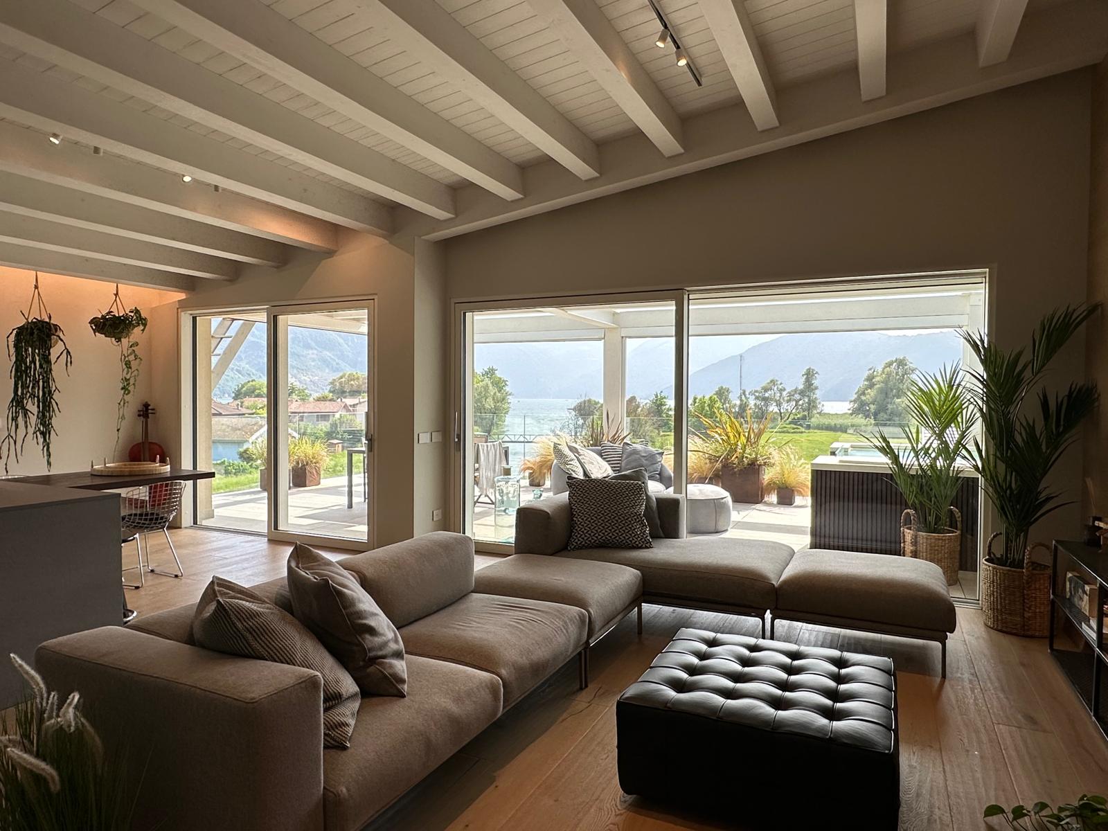 Un attico elegante che porta il lago d’Iseo direttamente dentro casa, trasformando la vista in protagonista di ogni ambiente. Le ampie vetrate incorniciano scenari che cambiano con le stagioni, mentre la luce naturale illumina gli spazi in ogni momento della giornata.